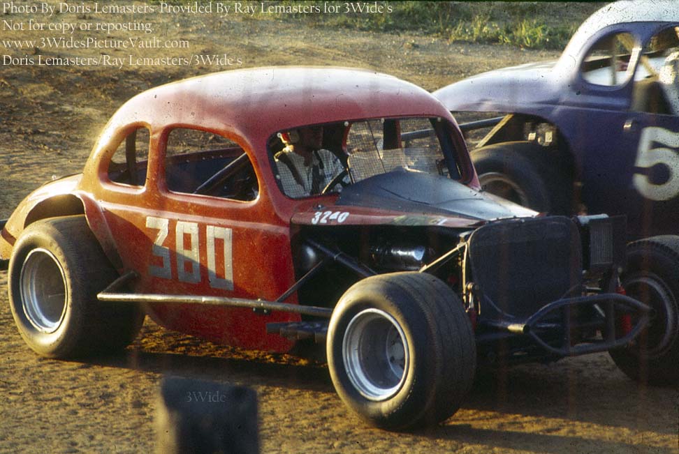 I think this an early season photo, when Long Island drivers would race the dirt tracks before the L.I. tracks opened. The car looks to be still unpainted, in red primer with duct tape numbers. Gray's cars were always better looking than this. |