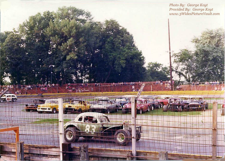 orange #21). Moms sat about six rows up, us kids sat in the first row . I spent many Saturday nights growing-up leaning against that pole! Watching my dad Georgie Donmoyer, Butch and many other drivers race. We used get dirtier than my dad who wore an open-faced helmet(man were we black!). I can still remember the feature when my dad hit some water dumped on the track in front of us and spun! I think Norm Bealer in the #55 also spun! Then Darryl Amy in the #2 couldn`t avoid them,and wound up going over top of them! Darryl went through the catch fence in the middle of turns 3&4 with front wheels landing in the first row bleachers fortunately nobody was hurt. I have many,many memories of those days! Thank You! very much for creating and maintaining this great web site & page to share comments & pictures. |