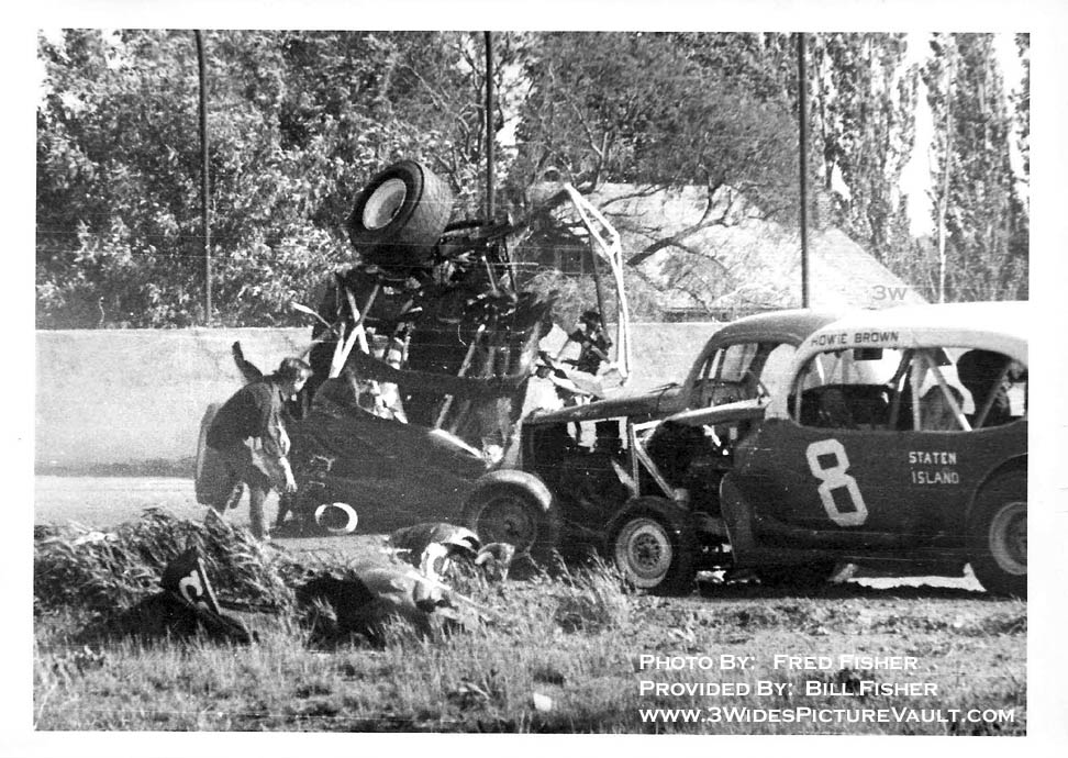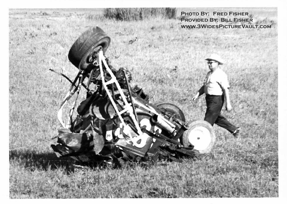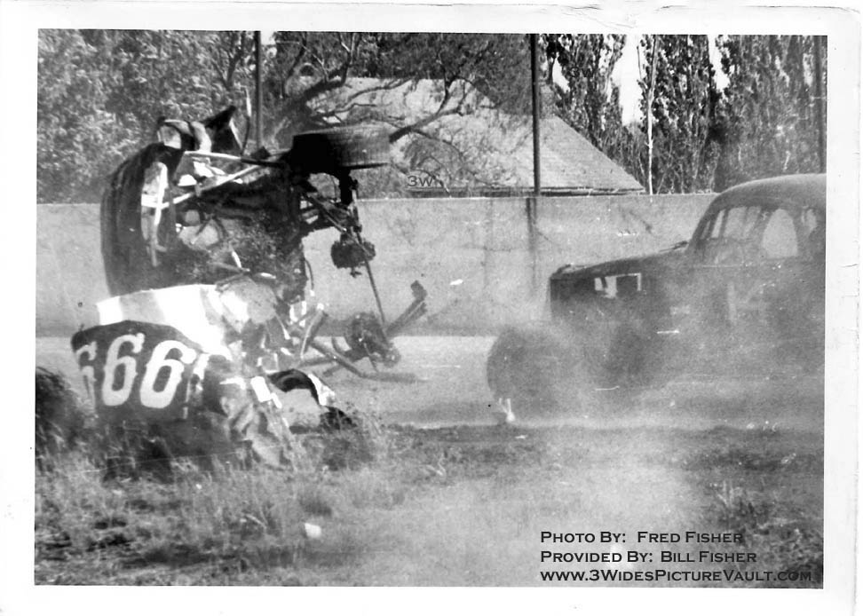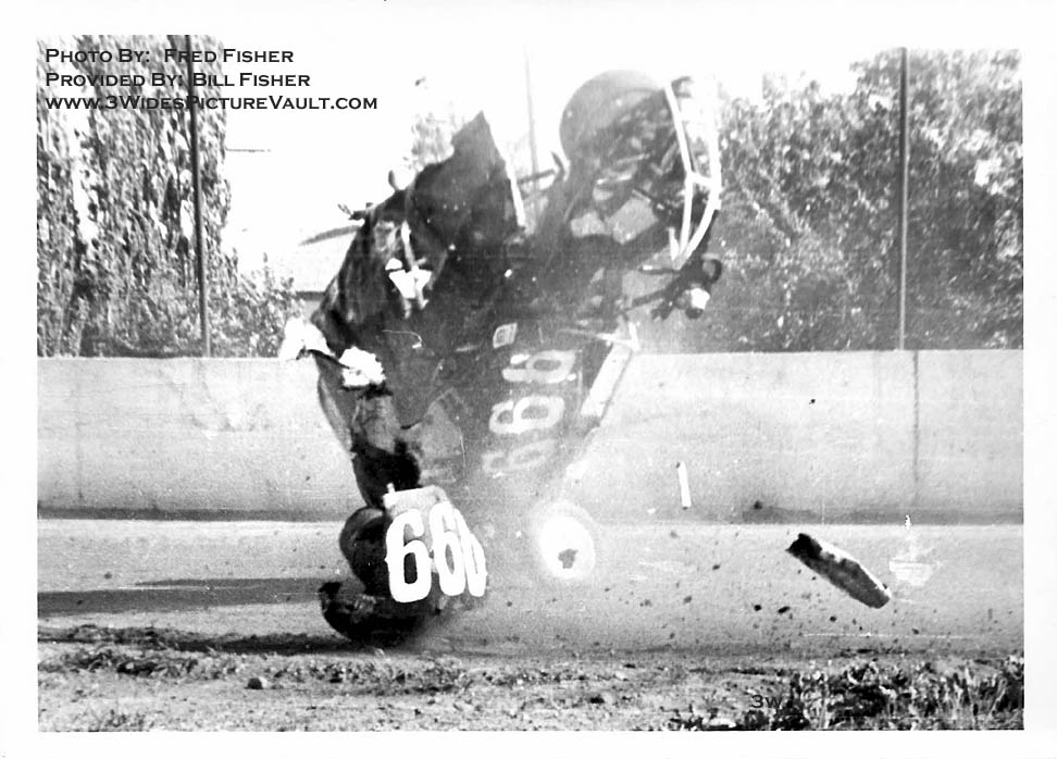 | Comments: | Comments from Bill: The photos above were taken by my father Fred Fisher. (He was a track photographer at Nazareth and Dorney Park.) The pictures here are of Del George driving the 666 at the Nazareth 1/2 mile when he flipped and destroyed the car. The photos made the center of the AARN. |