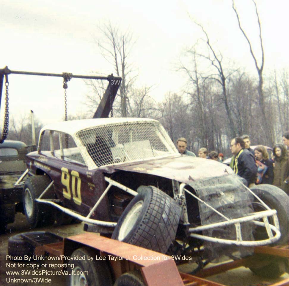 usually meant you had both front and rear end damage. The #90 was owned by Al & Lynn Whitehouse. Al was a Ford guy through and through, and although I can't see it in this picture, there was probably a Ford under the hood of the #90 above. The Whitehouse #90 was was a top runner in the sportsman division at East Windsor, and I also remember it at Pleasantville Speedway. |