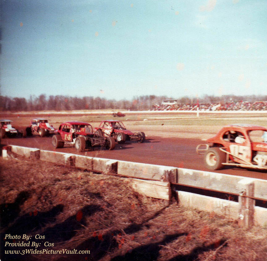 | Comments: | Great shot from through the fence in the pits at East Windsor, looking back across the track toward the first turn. For anyone that ever worked on a car at East Windsor, this was often the view of the action... either from here, or from on top of a truck lining the backstretch. I'm thinking that this is from a modified heat during a Sunday show from when East Windsor ran on both Friday's and Sundays. |