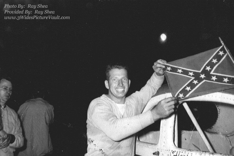 | Comments: | Comment: Southern driver Herbie Tilman showing some southern pride to the home team northerner's at Wall Stadium in this great photo from Ray Shea. Herbie, Gil, Buzzie & Wayne, Bobby Malzahn, Pee Wee, Gary Balough (I think they were all from Florida) and a few others made their way up at what at that time was either Rt. 1 or Rt. 301 (pre Rt. 95) to compete against the northern regulars, and on many occasions, those guys from the south made their way to victory lane, including the all time feature event winner at Wall, Gil Hearne. |