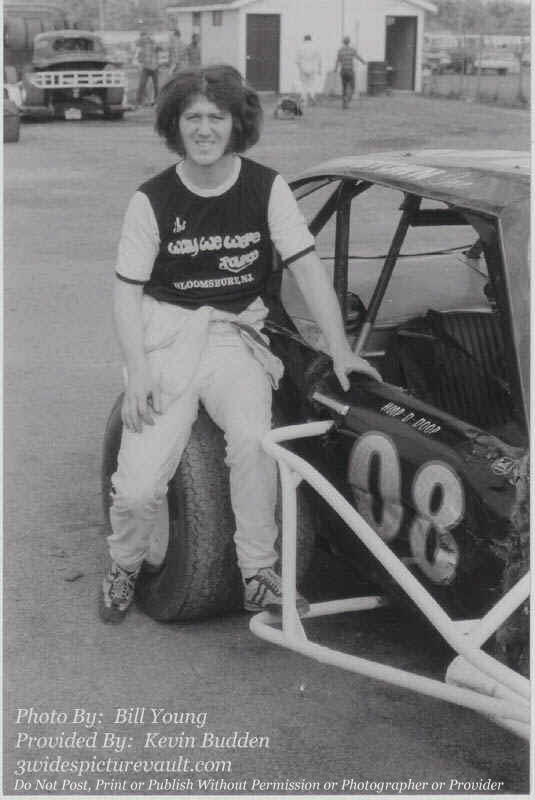 know, you turn around and suddenly it's 30 years later.... Here's a picture of Bruce Hooper, next to a black #08 from the mid 70's... and while hairstyles have changed just a bit, this is a scene that you can still see repeated each Saturday Night at the New Egypt Speedway. Great to see "Hoop-D-Doop" having a couple of great runs last year (2005) at New Egypt Speedway in the very tough modified class. I'm not sure, but I think Bruce was also involved with Wilbur Force's efforts before driving himself. Wilbur often drove a black #808. |