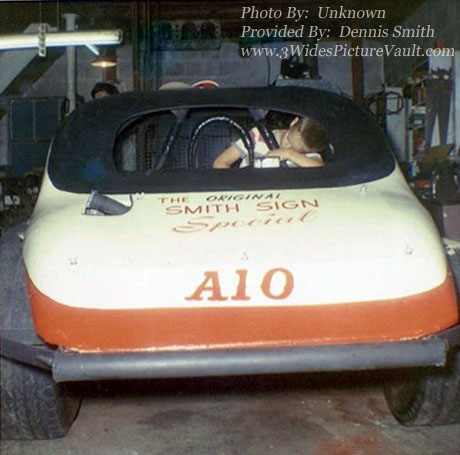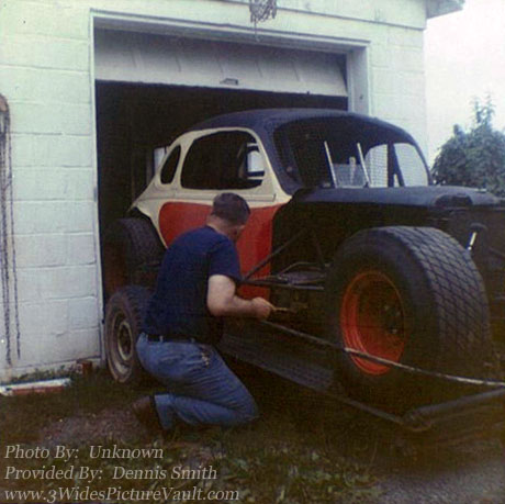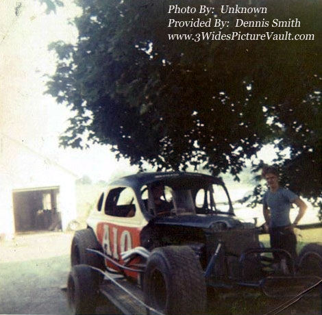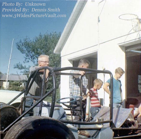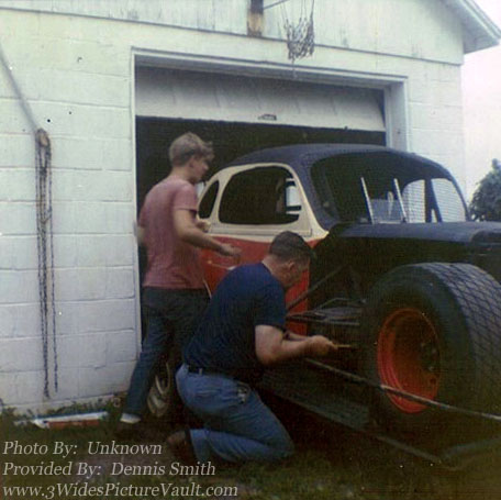 Jay and Dennis began building the #A10 sportsman in 1968, with a coupe body... some frame rails... and an engine built by "Rajah" (Jay's dad Roger)... Below are some photos that take you through bringing home a coupe body.. building the frame and cage, fitting the body to the cage.... painting... lettering... and then finally, on the trailer, race ready (1969 season), and eventually, victory lane!