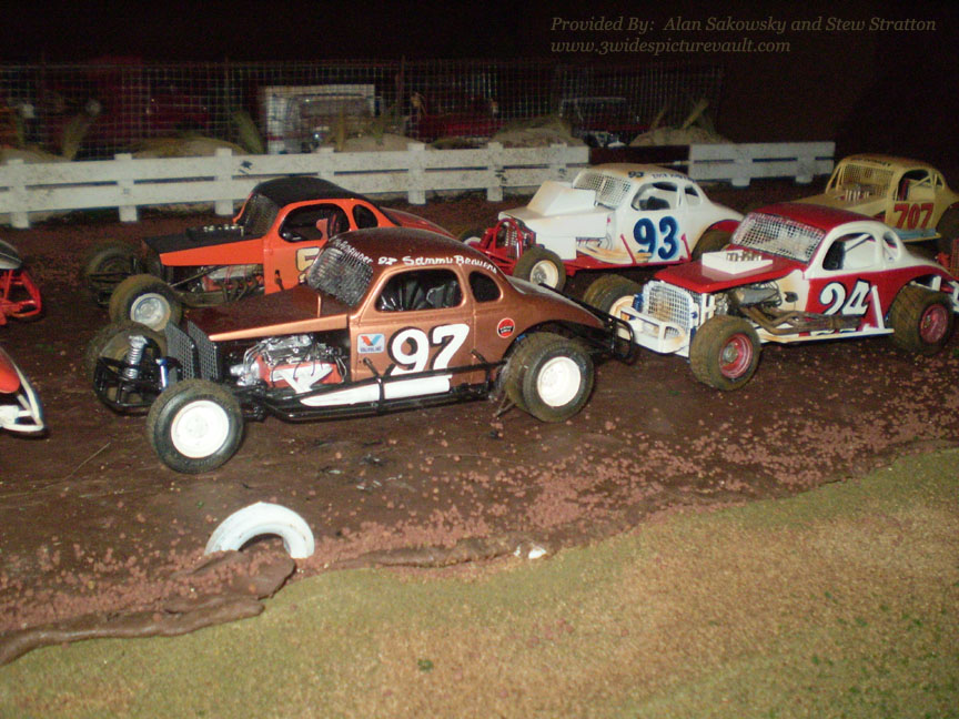 I choose to have a diorama made of the East Windsor Speedway backstretch from this time period because both cars and drivers had so much character and diversity. Each car from the frame up was so unique - there were certainly no carbon-copies. While the setting is specifically a scene from EWS, with slight modifications it easily can represent racing at Flemington, Nazareth, Harmony, Orange-County or Reading as many if not most of the same cars ran at these tracks as well
