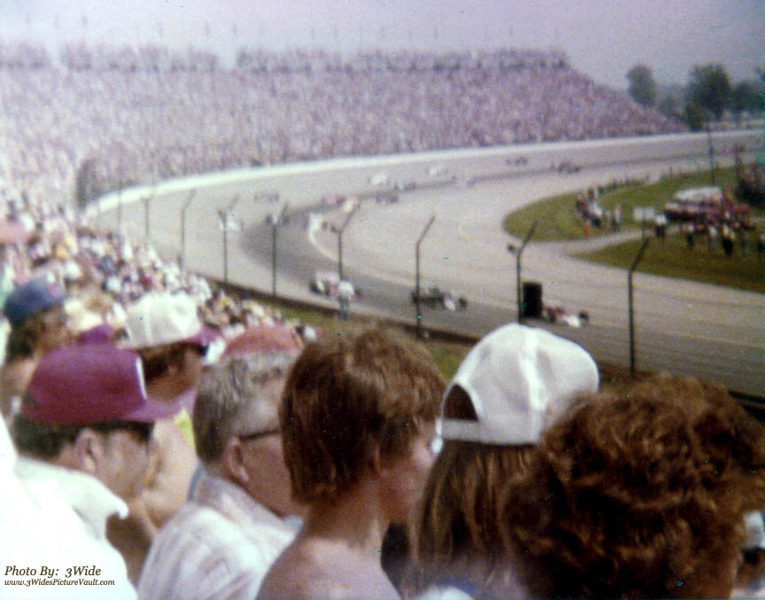 (If you're wondering why we didn't stay in the motel, it goes back to 1967 when my dad and some friends had driven out to see Indy for the first time... When they got near Indy, they couldn't find a hotel/motel for miles and miles...nothing... nowhere... Finally they stopped at this motel outside of Greenfield on old Route 40 and the Inn Keeper (who lived with his family in part of the main part of the facility) told him that he was sorry that he had no vacancy, but that my dad and his friends could park outside on his lawn... and spend the night in their car since it was so late....He even offered to leave his garage open for them to use the bathroom! Since it was so late, and there was nothing else available... my dad took him up on the offer.... That started the tradition of us "rough'in it for the next 15 - 20 years... All the years I went to Indy and not once did we stay in a motel! He'd park in the Hedrick's yard from then on, every year, until we stopped going in the mid 80's. We watched their family grow... They became almost like part of our extended family... that just happened to live 720 miles away.