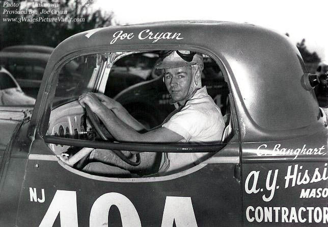 Racer Joe Cryan shown above behind the wheel in this 1958 photo from Nazareth Speedway.
