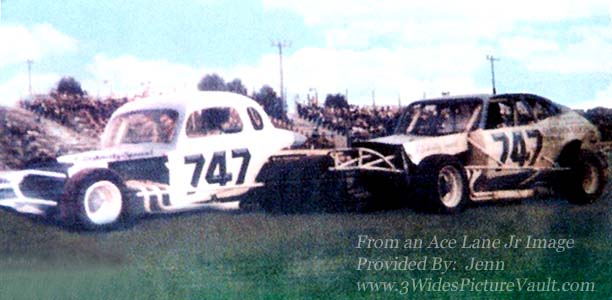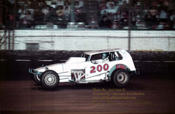 Photo credit: Top Left (Ace Lane Sr photo/Ace Lane Jr provided). Top Right (Dave Innes photo/Provided by GSVSCC.) Center #12 (Ace Lane Jr photographer/Provided by Mike Clissold.) Bottom photo (Steve Cameron photo/Steve Cameron provided.) After retiring as a driver, Rick was a successful car owner with drivers Frank Cozze, Danny Johnson and others behind the wheel.