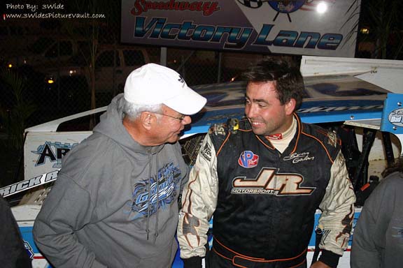Jim in victory lane at New Egypt Speedway with modified winner Mike Isles (2011.)Jim was involved in all aspects of racing, and was a wealth of knowledge for those who were fortunate enough to know Jim, and to have a chance to talk with him. Jim was also a big supporter of the Matheny Christmas event each year, and a frequent visitor here on our Message Board.