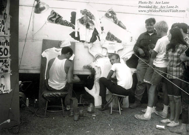 Jim Grbac (facing the camera) creating racing t-shirts in this Ace Lane Sr photo (1960's)