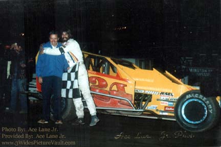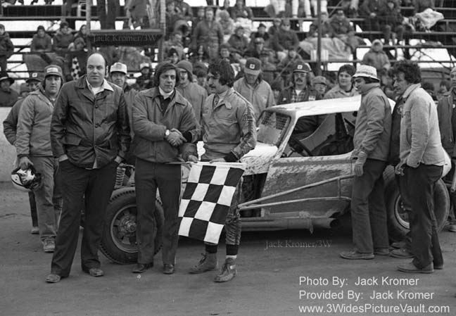 Stan Ploski in victory lane in this 1983 image (above), with the Roscoe owned "Ridgewood Exxon" #65, with owner Andy Roscoe in the background.