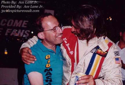 Nazareth Starter Ken Golden in victory lane with Tighe Scott 1976. (Jack Kromer photo)