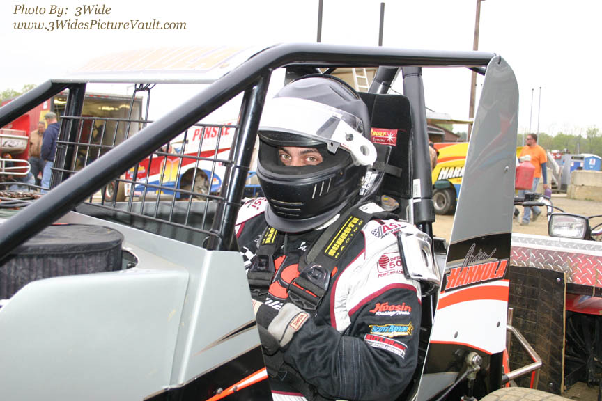 Open wheel ace Andrew Hannula had his "Wingless" midget on hand for hot laps.