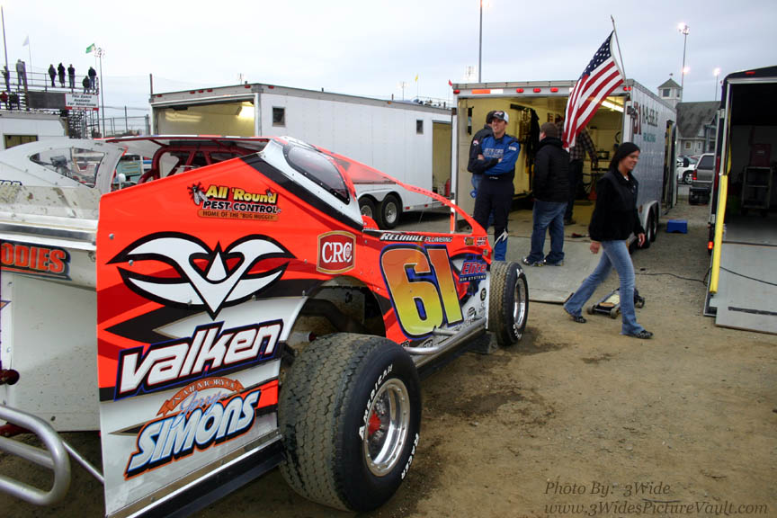 Some new faces in the pits... with possibly more to follow.... Here's Brian Cranmer in the "Ling Trucking" and "County Line Auto Body" #66 Modified.
