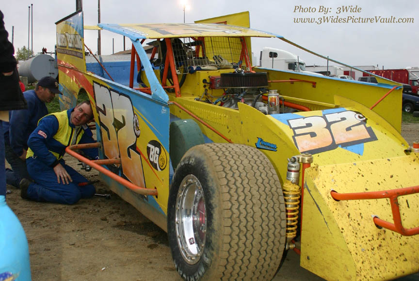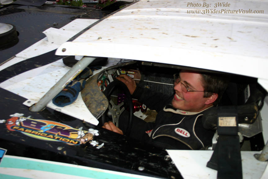 Billy climbs out of the K&A (as in Kickin' Azz) Team #1 Racing Modified... (I didn't make that up... gotta give credit to one of the crew guys for that one...)