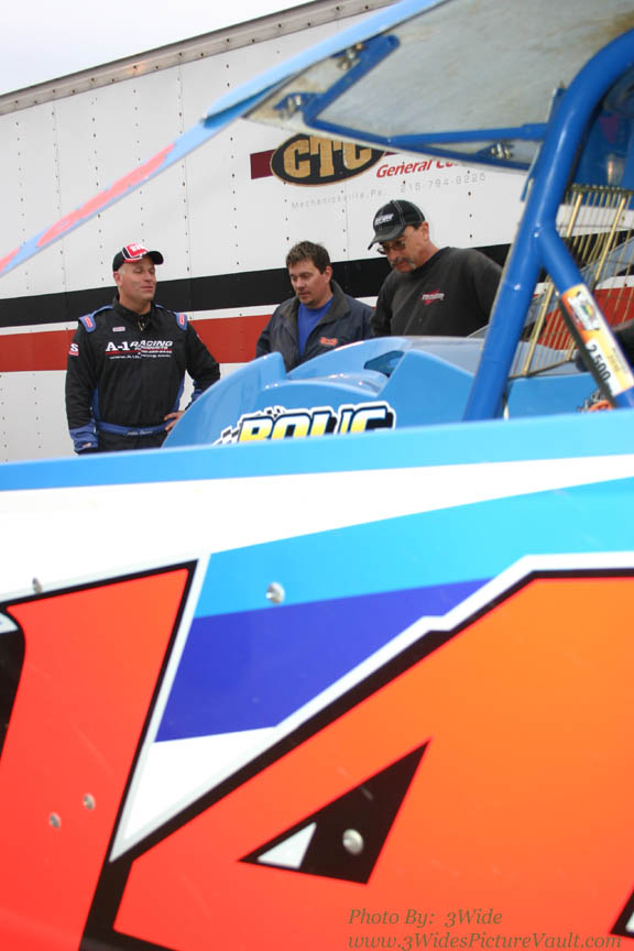 One of the smoothest driver's and I hear one heck of a fabricator, John Micek does a little tweaking on his #21A Crate Sportsman in between events....