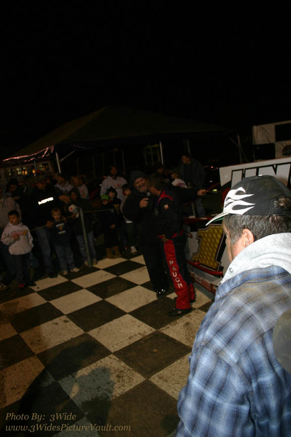 A few from behind the scenes as Track Announcer Nick Leach interviews BIlly following the early season win in what I think is Billy's 35th year or racing... and WINNING!