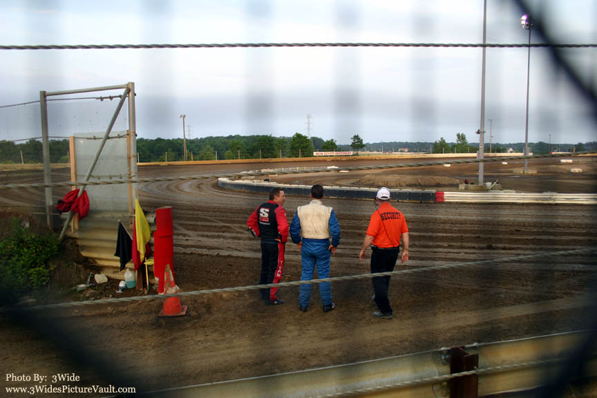 Billy Pauch and Frank Cozze Sr. keep an eye on track maintenance prior to the start of the 1st Modified Feature
