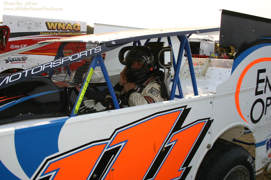 BIlly Pauch in Victory Lane? (Well, not exactly, but after winning the first 20 lapper, Billy heads from tech, back over to his pit to get ready for the second feature event.)