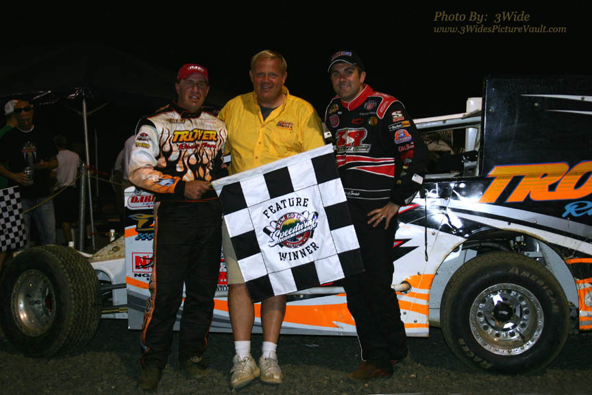 Duane, (left), Promoter Bob Miller (center) and Levi Jones (right).... All winners on this Thursday Night at New Egypt Speedway.