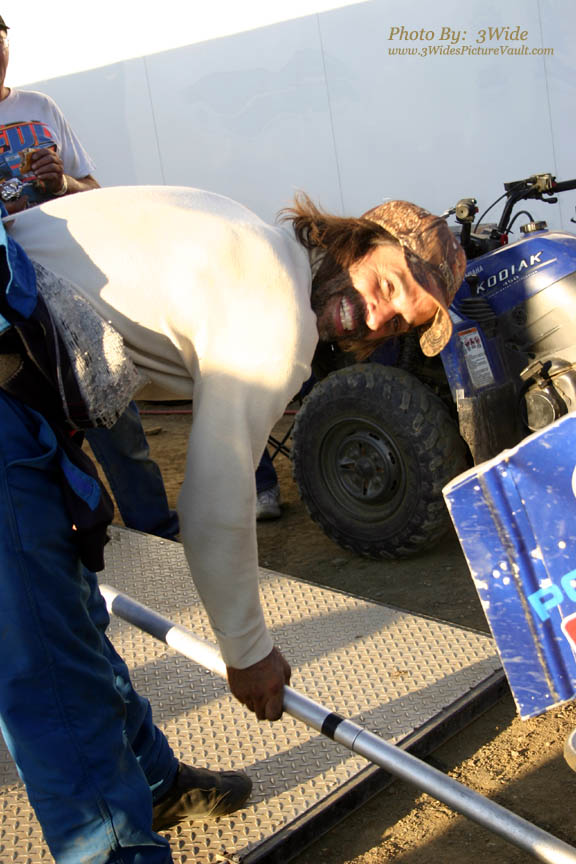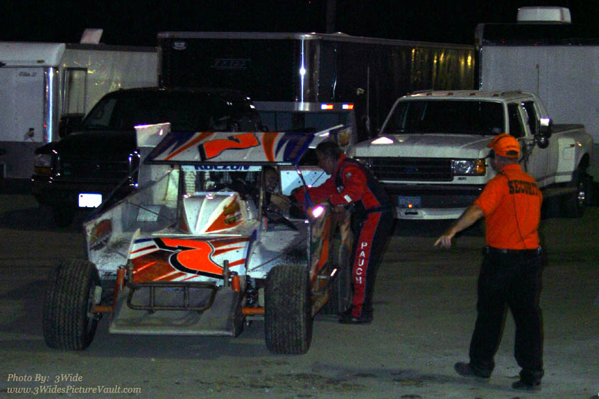 Crew member Don C. guides Ron John out of victory lane and over to tech.