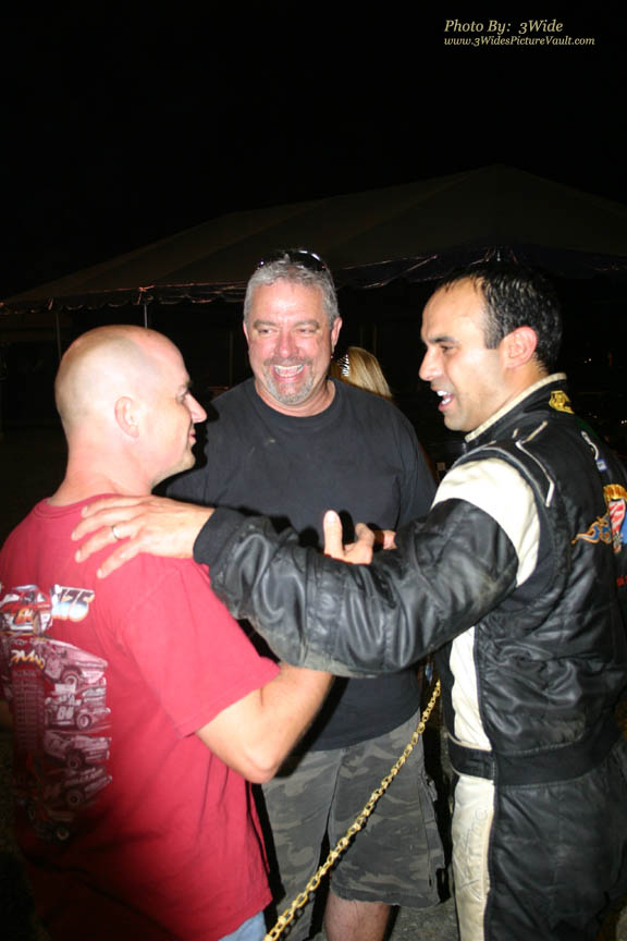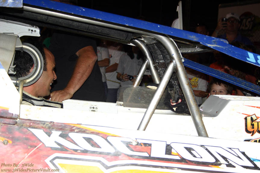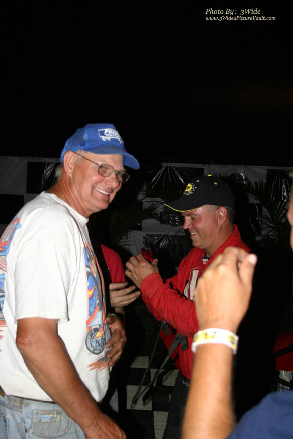 Ron John Koczon get's a well deserved congratulations from Billy Pauch... , to which Billy then pointed the way up the victory lane ramp!