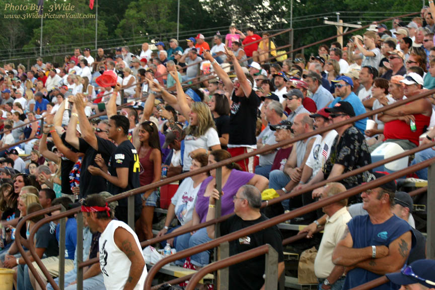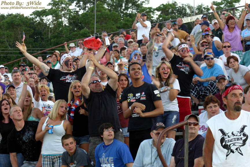 The fans from Section 6 watch Billy take the final round win in the shuffle, pocketing a quick $500 for 2 laps of racing...