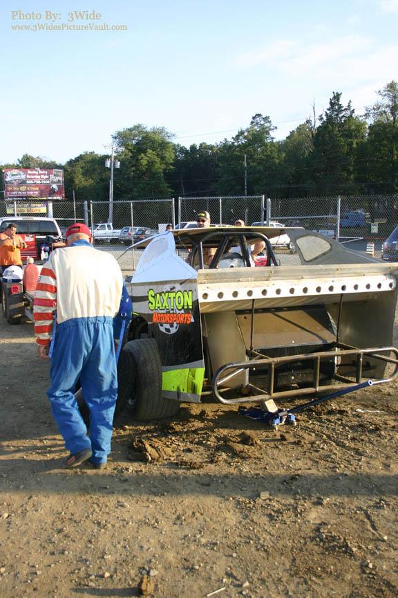 Strong running Sportsman Kyle Borrer pulls into his pits...
