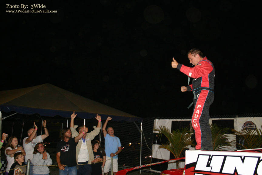 Good sport Ron Jon Koczon (who finished second to Billy on this night) was quick to greet Billy in victory lane and offer his congratulations.