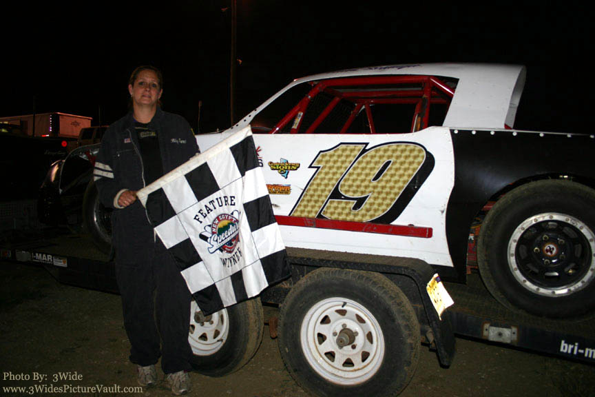 Heidi took the win in the Outlaw Powder Puff event driving Kevin Bifulco's #19.