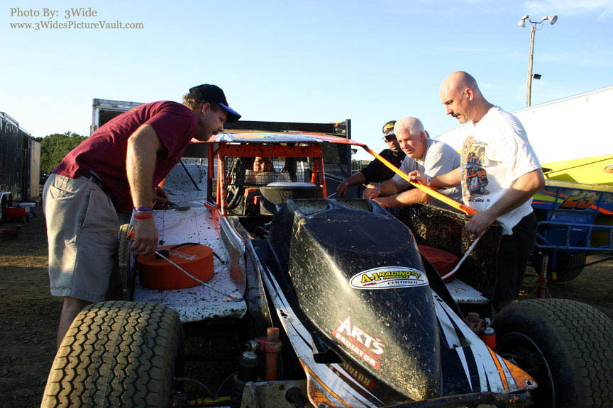 Billy gets ready to climb out of the #1 after winning modified heat #1...
