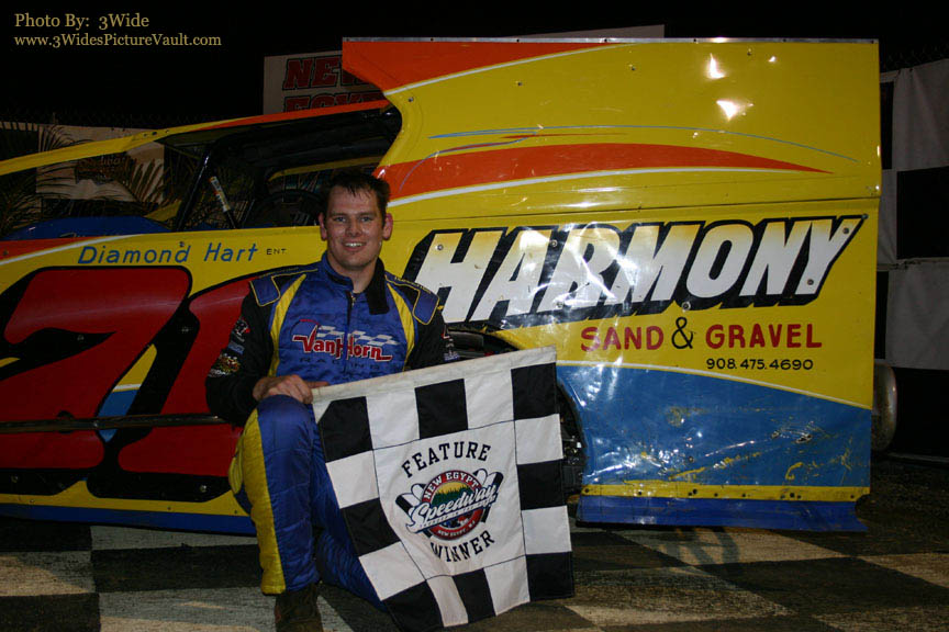 After battling fellow Orange County Alumni Johnny Guarino for many laps, David Van Horn took the win in the modified feature for the 2nd time this season.