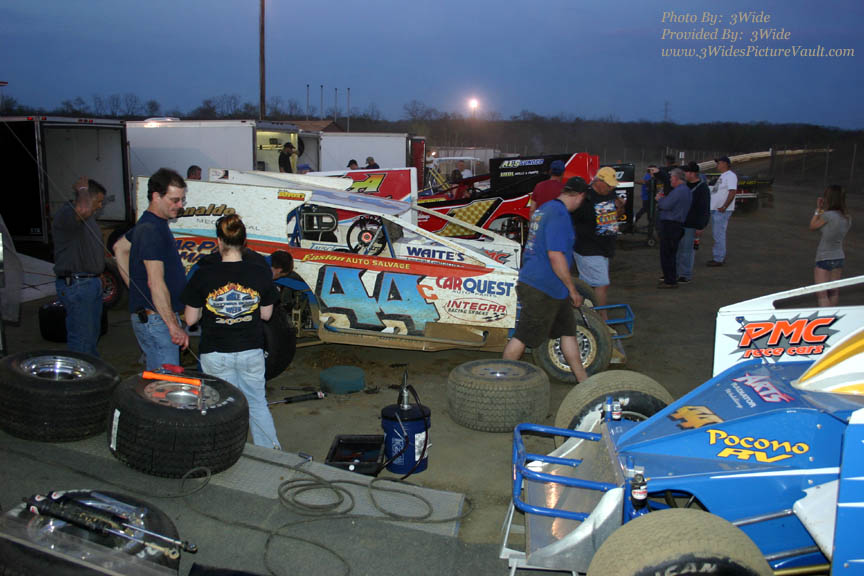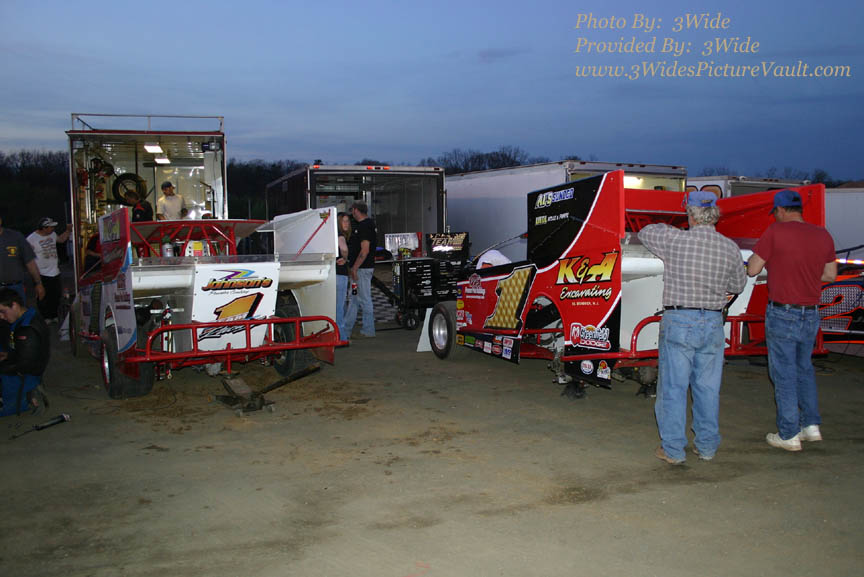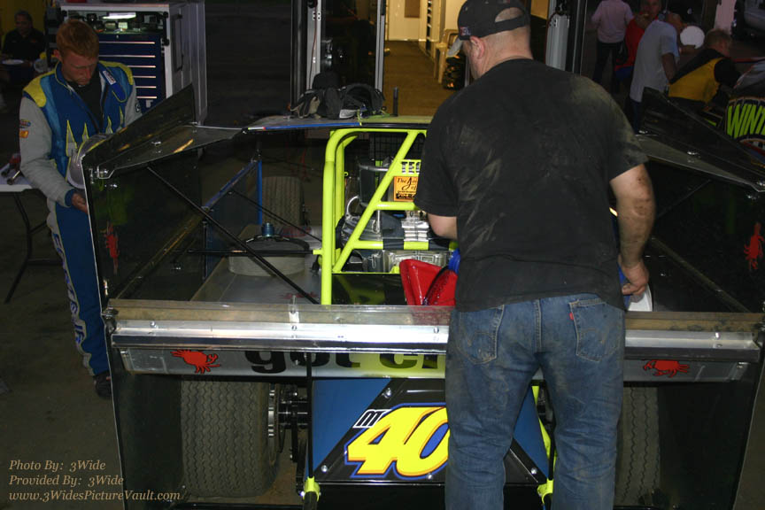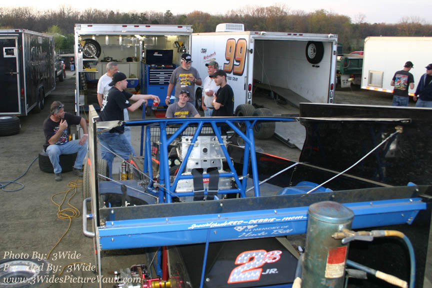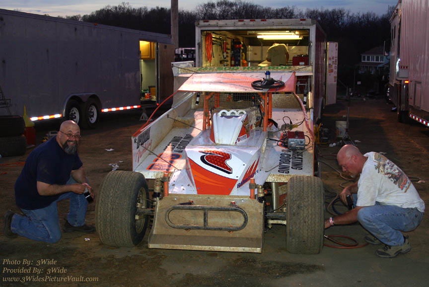 "Camp Cozze!" That's SS Sprint driver Rick Cozze working on the cars of brother Frank and nephew Frank Jr.