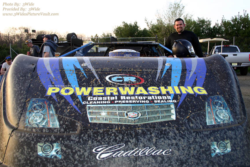 After spinning early, Todd Cray's crew got him out of the pits without losing a lap, and it didn't take Todd long to get back to the front! Evening sponsor "Cradle Rock Developers, did the honors in victory lane. That's sportsman driver Mike Lyons with the CraddleRock sign.