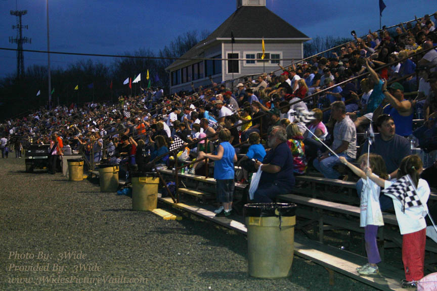 A good size crowd gives a wave as the Super Stock feature is about to start.