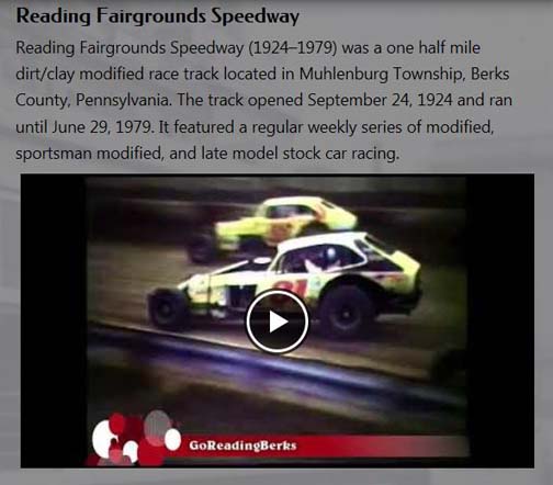 More interesting info of about Reading PA from www.goreadingberks.com website, including a video capturing racing action from the mid 70's: