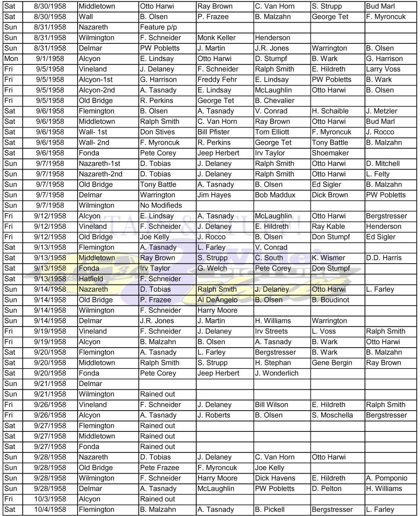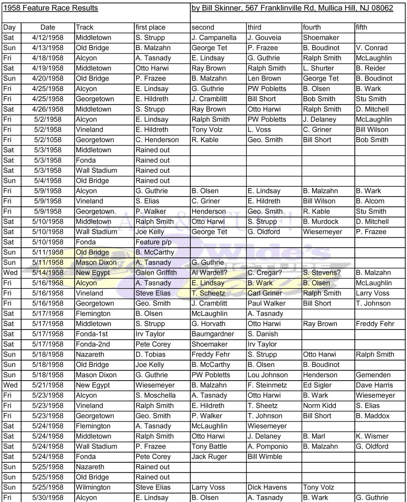 The top 5 feature finishing positions, year by year, from the area speedways of