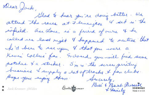 The card from Bill & Barb Pursell, along with the patches and Kevin Collins sticker did a lot for my spirits...