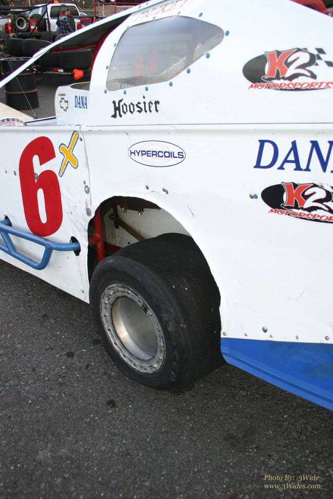 ... the right rear tire on Erik Enstrom's #6X looks pretty bad after his feature
