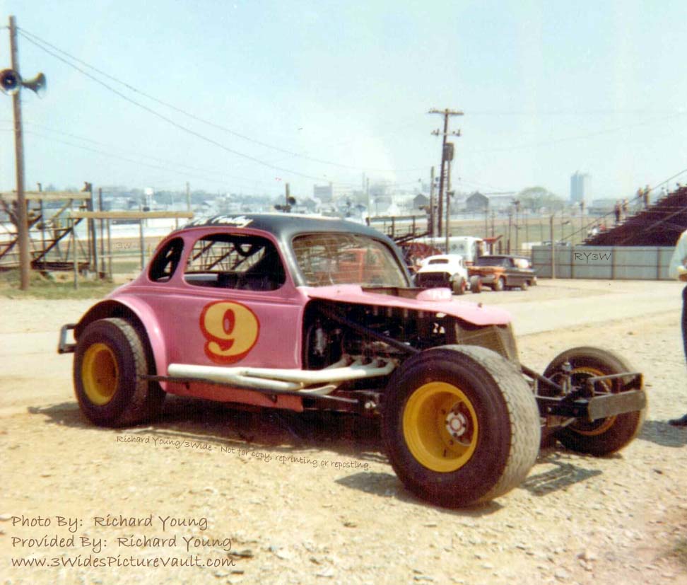 Comments: | Comment: Ed Farley was the driver of this very recognizable pink #9. Many others would drive the pink #9 over the years, with possibly the last driver being Gary Balough first in a coupe version and then in a Whip Mulligan built Gremlin that would later become the Ferraiuolo #73 (I think with the caveman on the 1/4 panel.) |