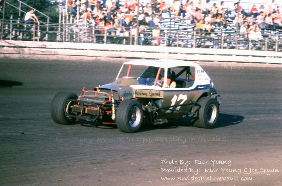 | Comments: | Comment: Phil Meisner in one of my favorite cars from back in the day. Some of the cars that Phil has driven throughout the years include the yellow #4 coupe (former Lenny Martin car), the K46 Valiant, the Allison/Hustack (Sp?) #71, the Larry Marvel #17, and other #17's (including one that might have been wrenched by Tom Carberry Sr).... Possibly the blue #22, the Barry Schenck owned #A, the Tom Carberry owned #947, and most recently, the self owned #17 SpeedSTR. |