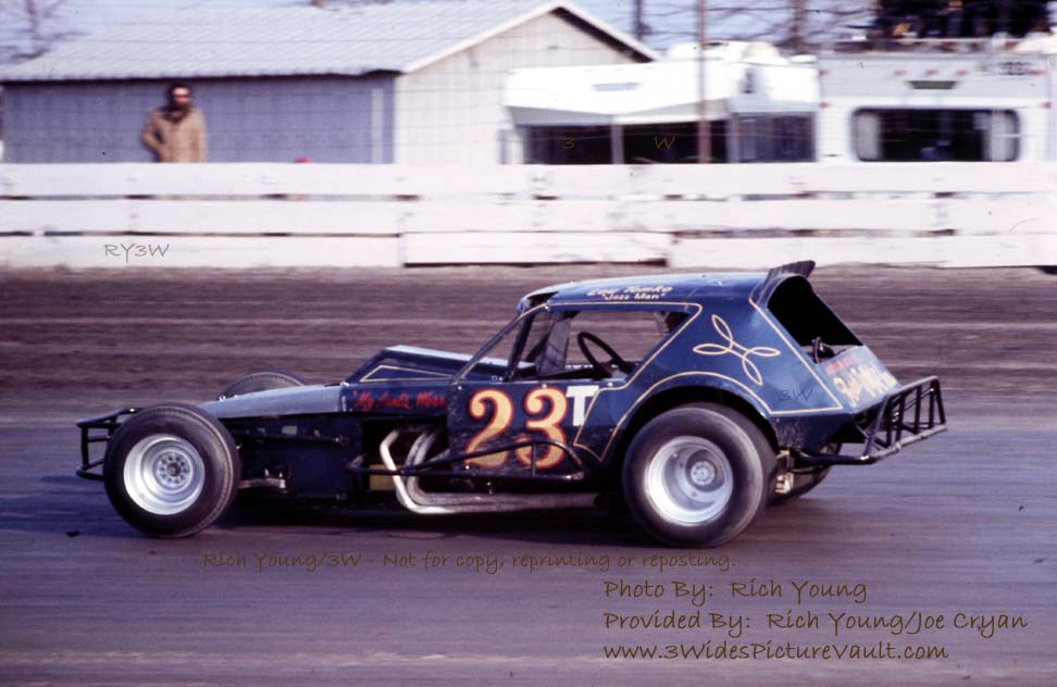 | Comments: | Comment: Former Mike McNamara #8x modified, repainted, renumbered, and this time with a small block under the hood. Super cool looking car. No idea what happened to it, but it absolutely pins the cool meter. Says "Jazz Man" under the name on the roof. Anybody remember seeing this car painted like this? |