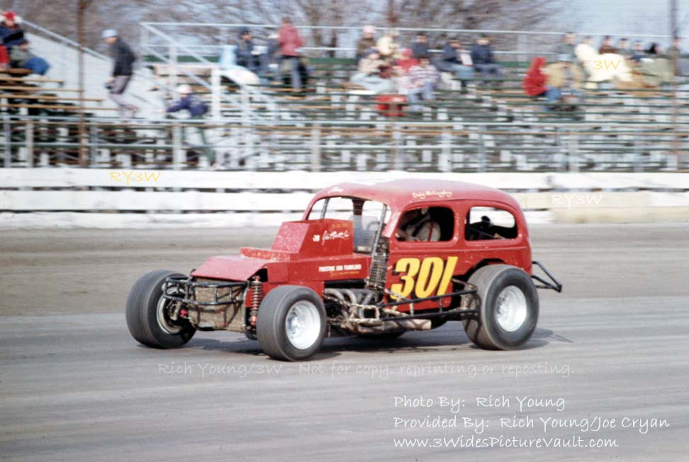 | Comments: | Comment: Big Craig McCaughey and sedans just seemed to go together.... He won in the McMann #4 sedan, and also won in this #301 sedan in the modified division at a time when most had traded in the bigger body for Gremlin or Pinto. Speaking of doing things differently, those back tires sure do look tall.... |