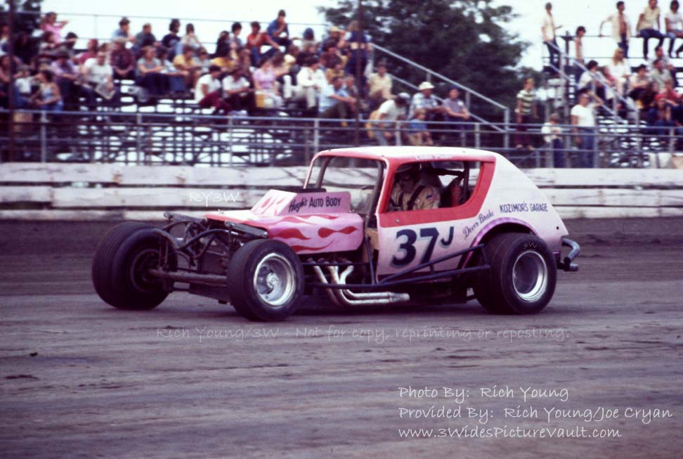 | Comments: | Comment: Eddie Pasko behind the wheel of the Kozimor Garage #37J. Looks pretty early in the night for the modifieds, but looks like there's quite a bit of damage already on the front end of the #37J. |