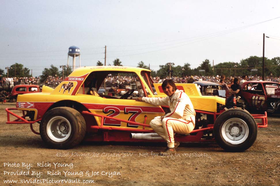 | Comments: | Comment: Stan next to the #27, which might have been one of the first cars that Trenton Mack was involved in... Don't believe me? (Check out the little chrome bulldog just above the front wheels.) I think this car had some kind of a trick front suspension when it made it's debut, but I'm told that Stan had it changed back to a more conventional setup after not being satisfied with the performance. |
