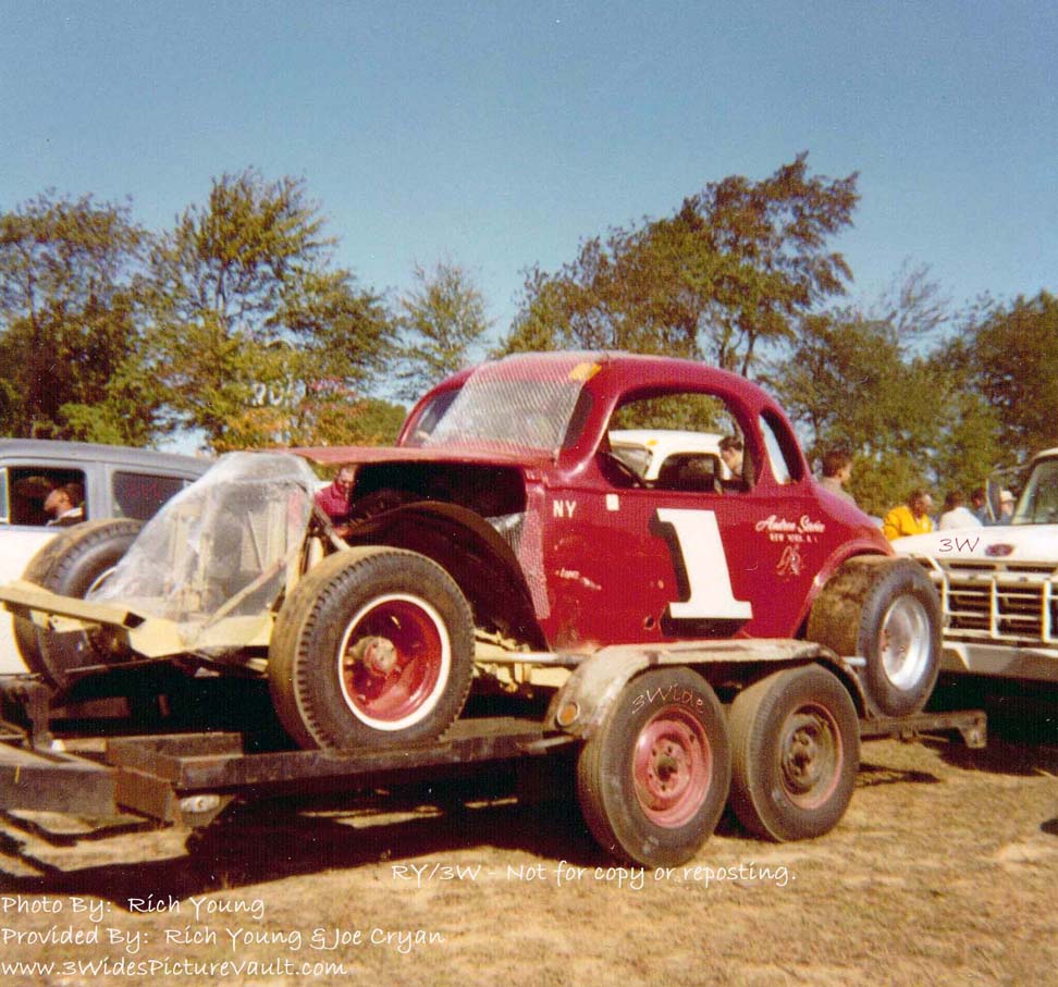 The photo of the #1 is from 1964. Gene Gamache won the 1964 Islip Speedway Modified Championship with this car owned by Ed Ackerman. Rene Charland drove it at Langhorne that fall. A little more history on this car as it became Rene's #3 in 1965 and is the same car that burned at Malta NY.( The French BBQ) Eddie Flemke pulled Rene out of the burning car. |