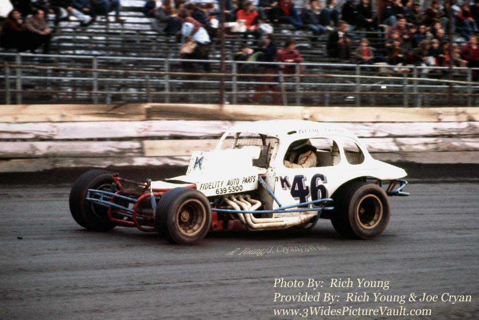 | Comments: | Comment: Great looking coupe driven by Kerry Schloder. From the style of the lettering, my guess is that this is another Tom Backes lettered car. Tom lettered a lot of good looking cars from the Morrisville PA area including the Piscopo #39, the Menschner/Neary #21, the George Taylor owned #93 driven by Dick Havens, etc. |
