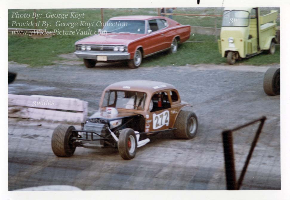 Photo ID # K10.03.14_272_COO_FLM_0070GK_1 Car #: #272 Driver (s) : Marc Cook Location: Flemington Speedway Date: 1970s Photographer: George Koyt Photo provided by: George Koyt Comments: Comment: Marc Cook heads out of the pits and onto the speedway for Sportsman heat race action at Flemington Speedway.