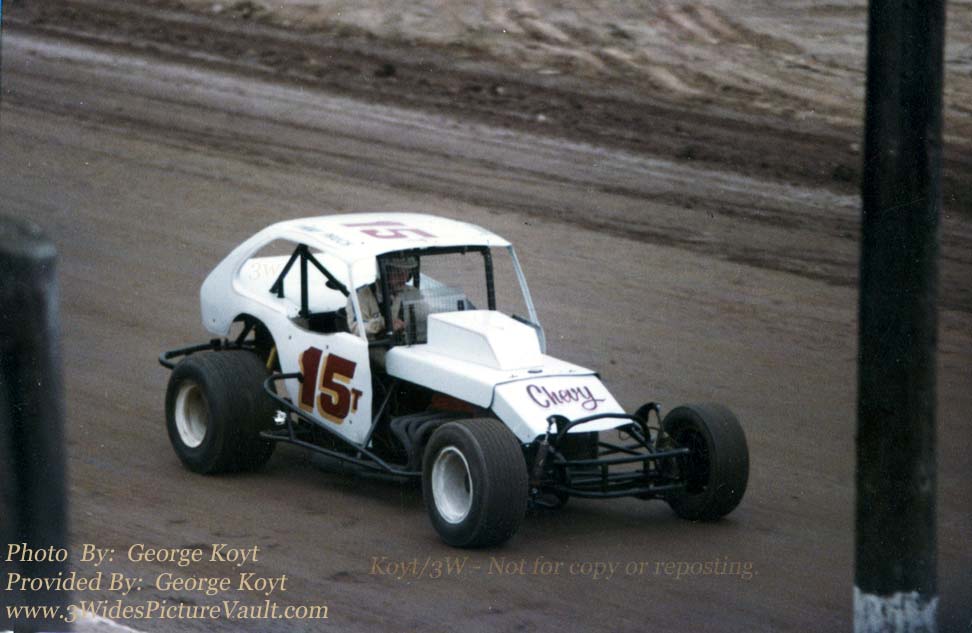 Photo ID # M03.25.16_15T_PAU_NAZ_0079KOYT_1 Car #: #15T Driver (s) : Tim Pauch Location: Flemington Speedway Date: 1979 Photographer: George Koyt Photo provided by: George Koyt Comments: Comment: Tim Pauch in the #15T. Tim would focus his efforts on Enduro racing and would go on to win a ton of Enduro races at the Square.