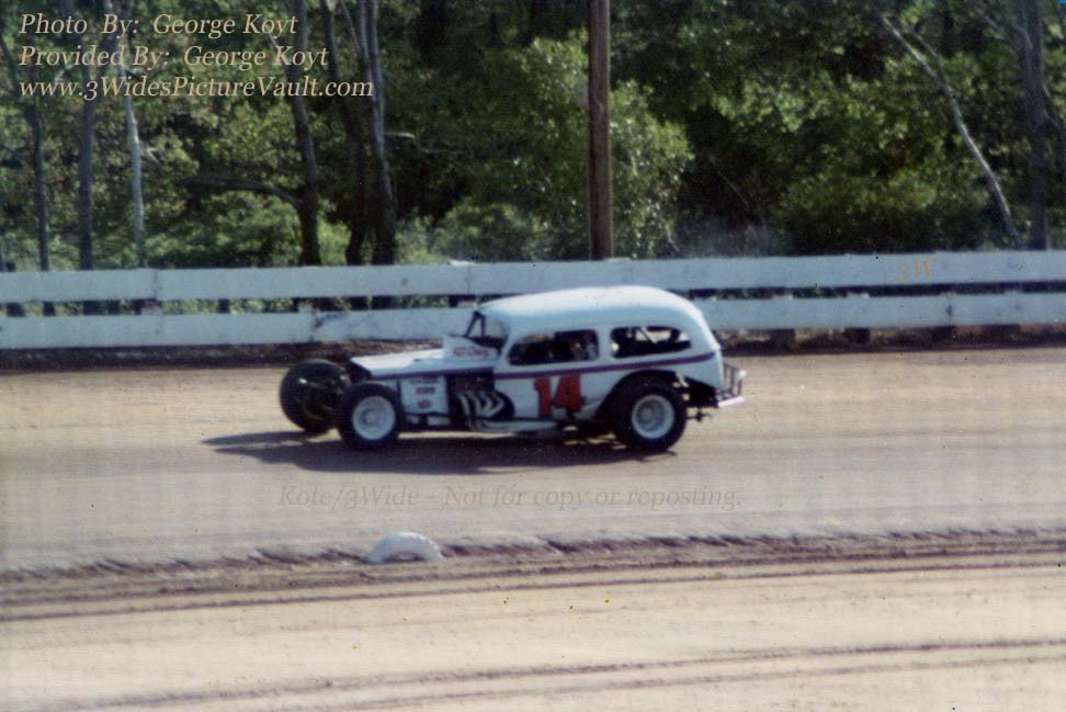 Photo ID # M04.09.16_014_TOR_EWS_0573KOYT_1a Car #: #14 Driver (s) : Bob Toreky Location: East Windsor Speedway Date: 1973 Photographer: George Koyt Photo provided by: George Koyt Collection Comments: Comment: Everyone's favorite, Gentleman Bob Toreky in the 3rd turn at East Windsor.